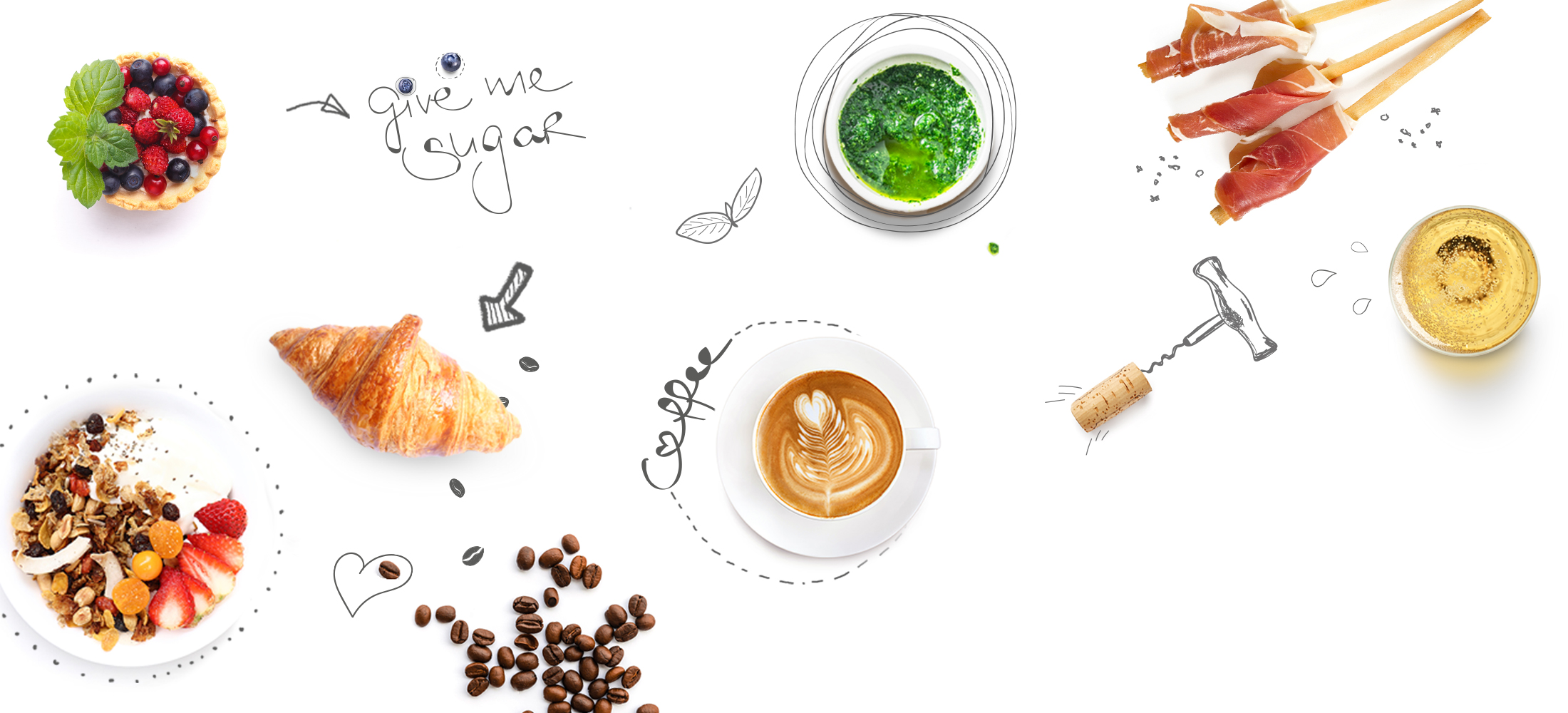 Grissini, marinierte Oliven, Parmesanmöckli, Tomaten-Mozzarella-Spiessli, Bruschetta mit frischen Tomaten und Basilikum, Piadina al Prosciutto, Vitello tonnato mit Kapernäpfel, Crevettenspiess mit Aioli, Schoggimousse im Weckglas, Mini-Patisserie